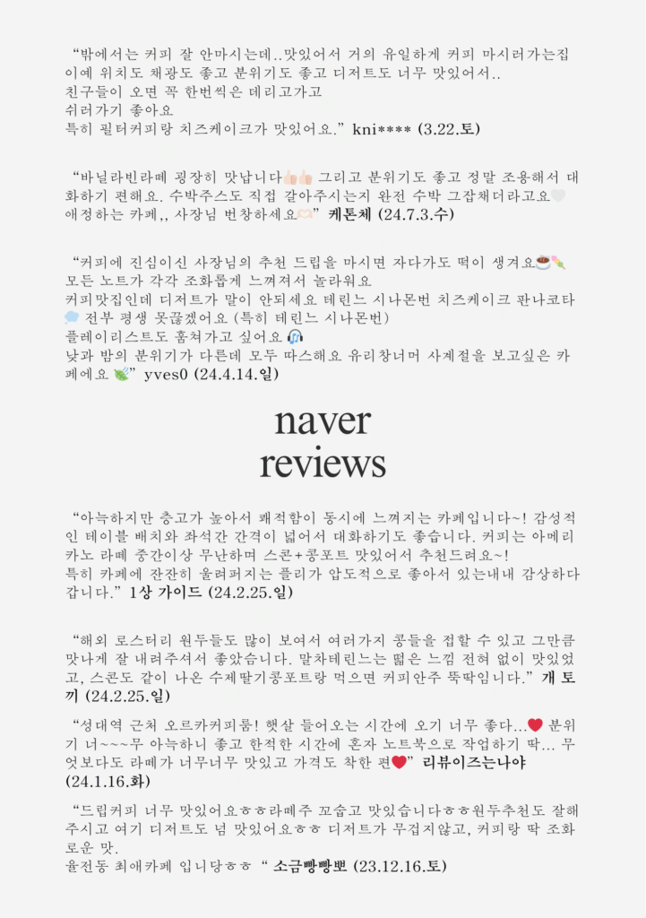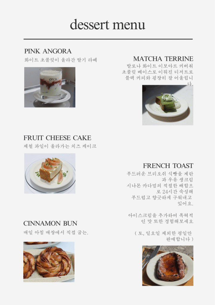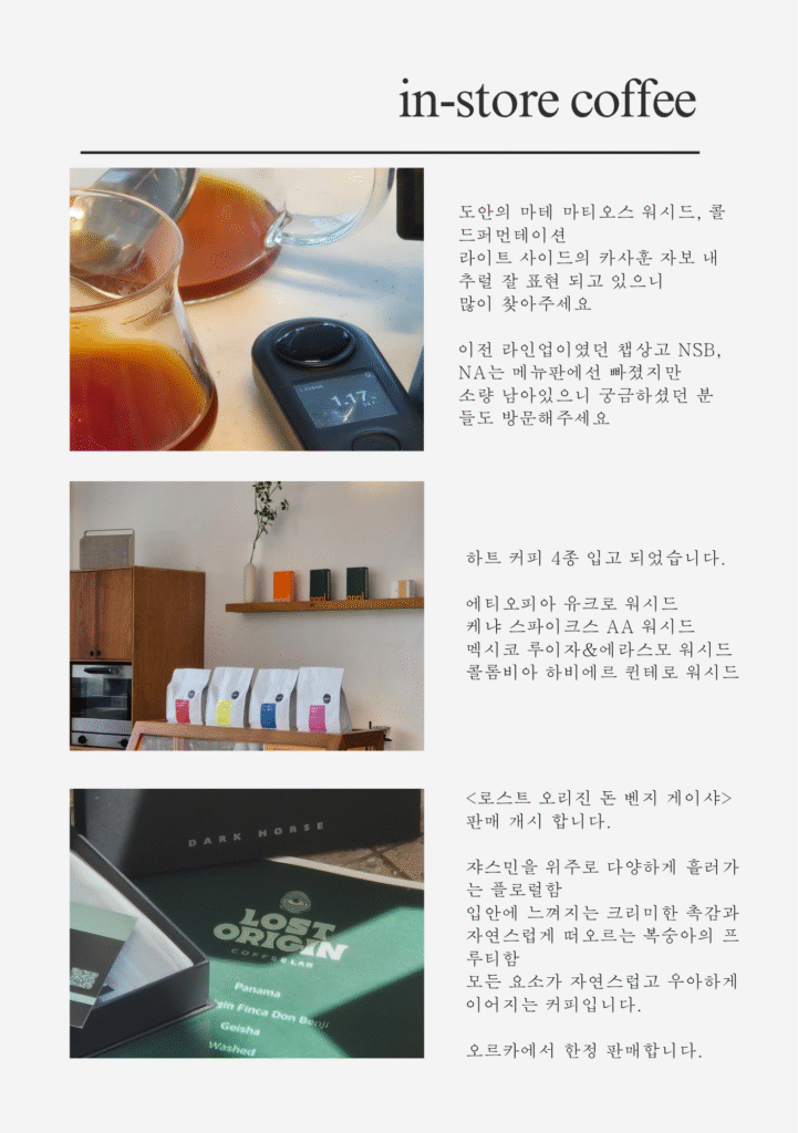 카페의 공식 인스타그램 페이지에서 공개된 정보를 참고하고, 직접 촬영한 사진을 함께 사용해 전체 콘텐츠를 구성했습니다.