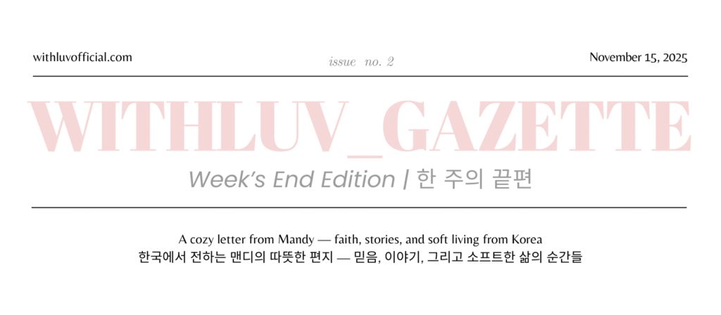 전체적으로 이번 주는 조용하고 좋았어요. 크게 울리지 않아도, 삶이 부드럽게 흘러가는 그런 한 주. ✨